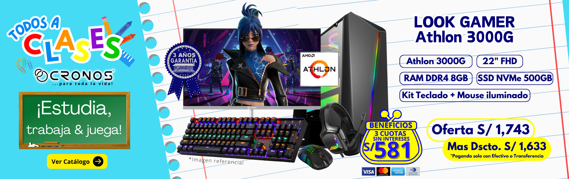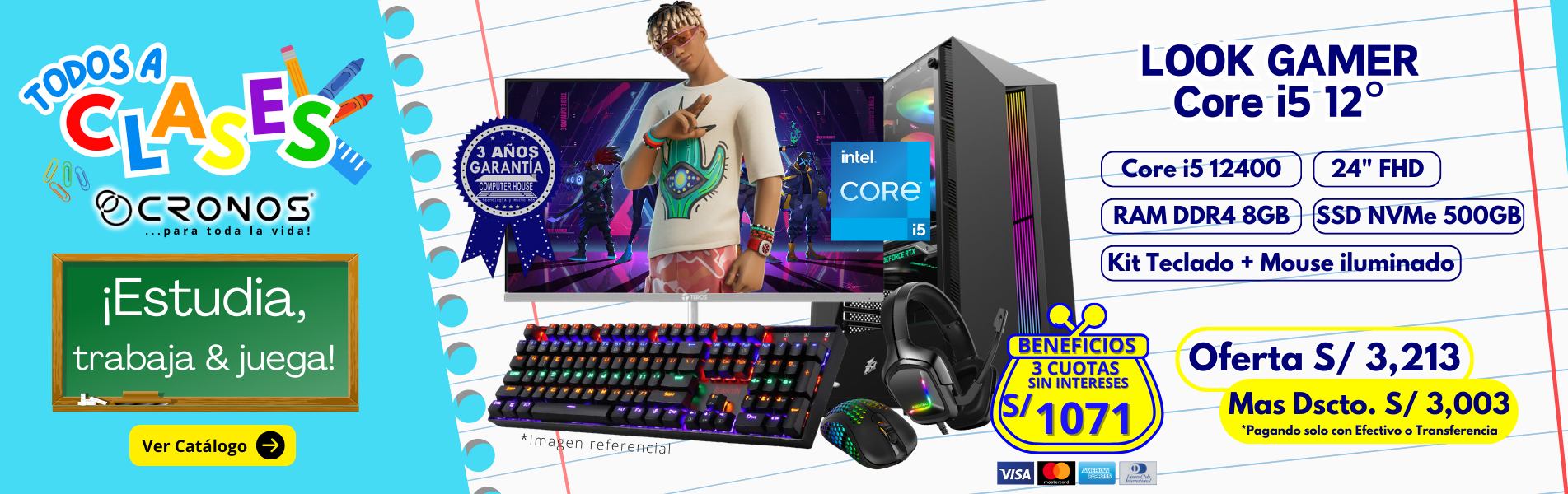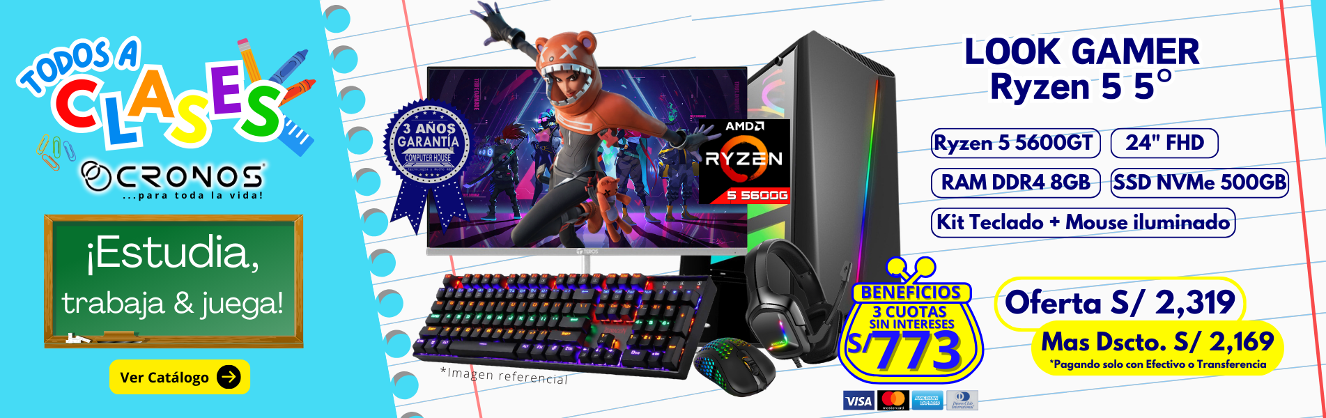 PC Look Gamer CRONOS One "E", RAM 8GB, SSD 500GB, Monitor 24″ FHD.