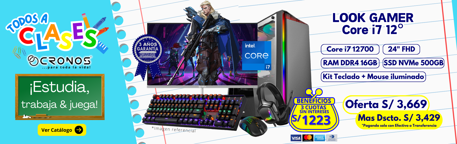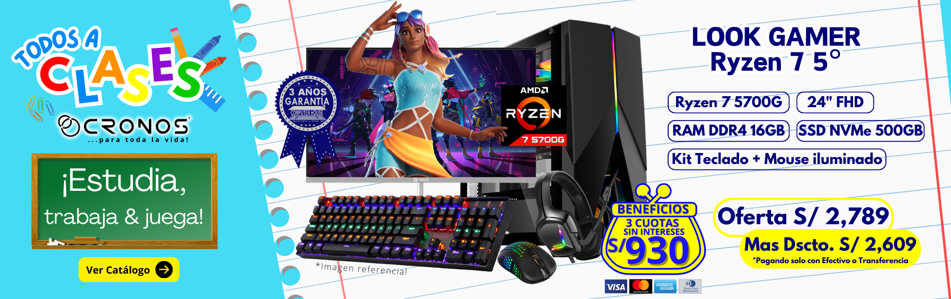 PC Look Gamer CRONOS One "F", RAM 16GB, SSD 500GB, Monitor 24″ FHD.