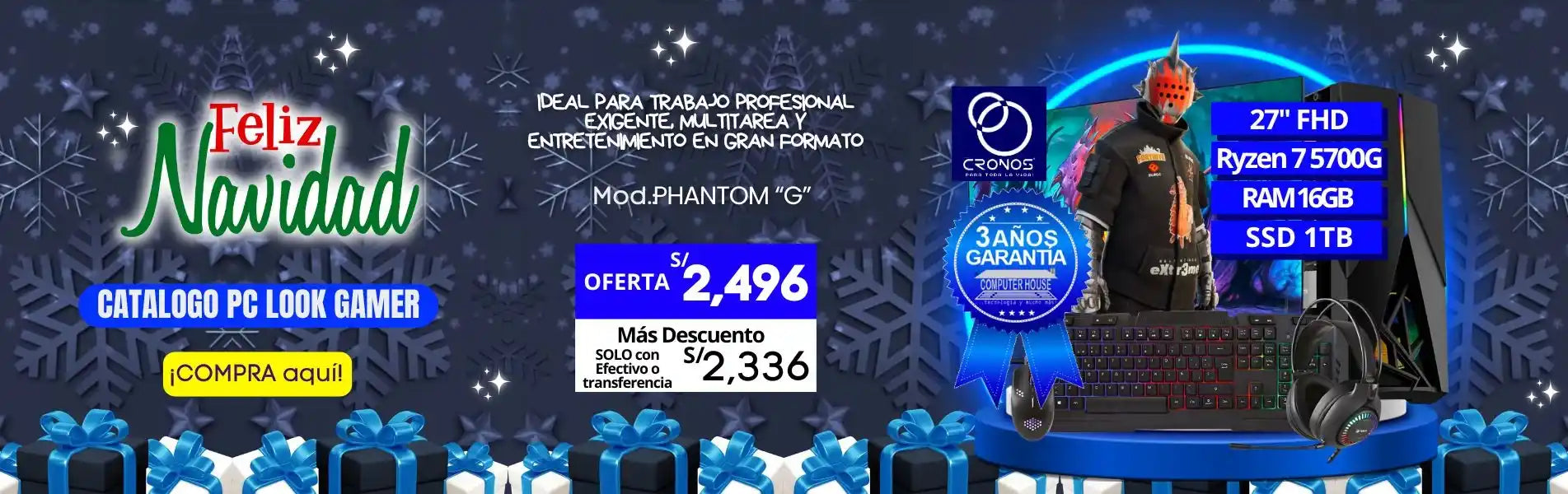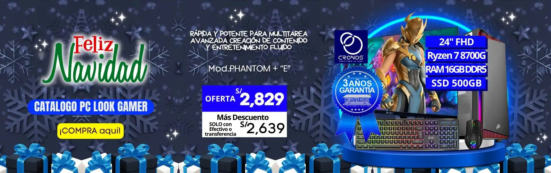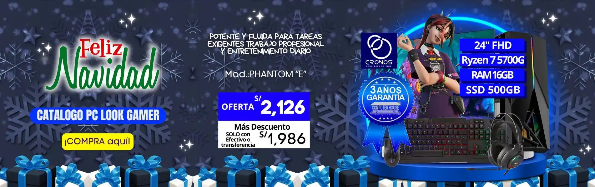 PC Look Gamer CRONOS Phantom R7-5 "E", RAM 16GB, SSD 500GB, Monitor 24″ FHD.
