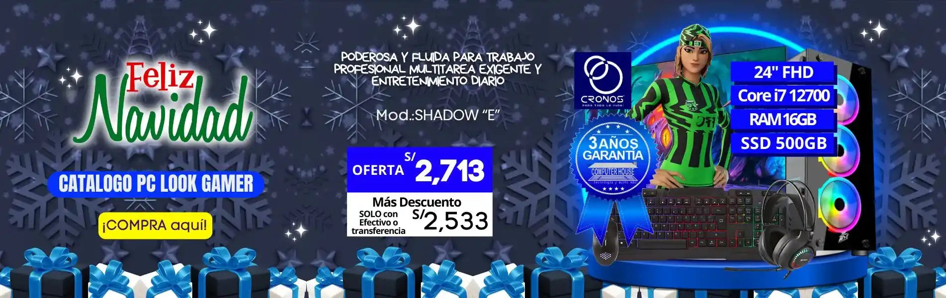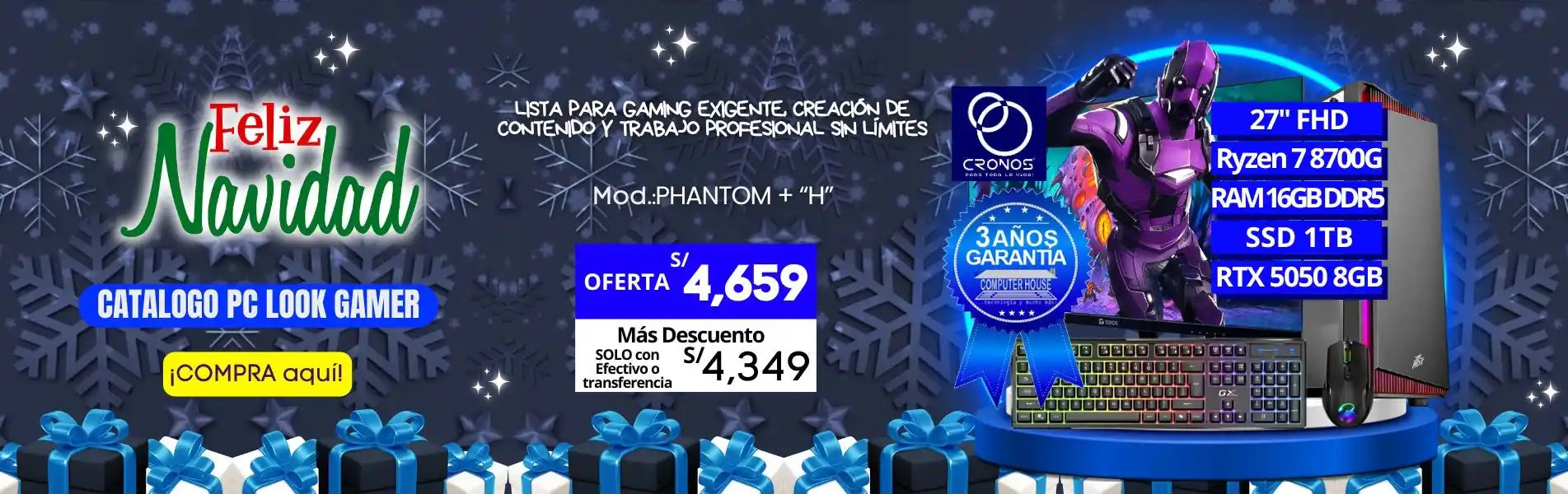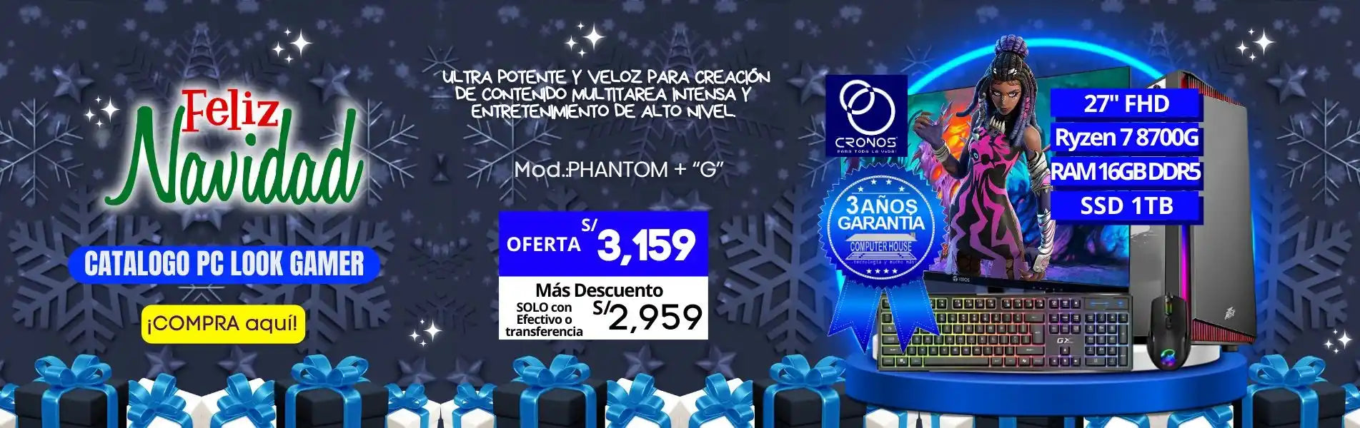 PC Look Gamer CRONOS Phantom R7-5 "E", RAM 16GB, SSD 500GB, Monitor 24″ FHD.