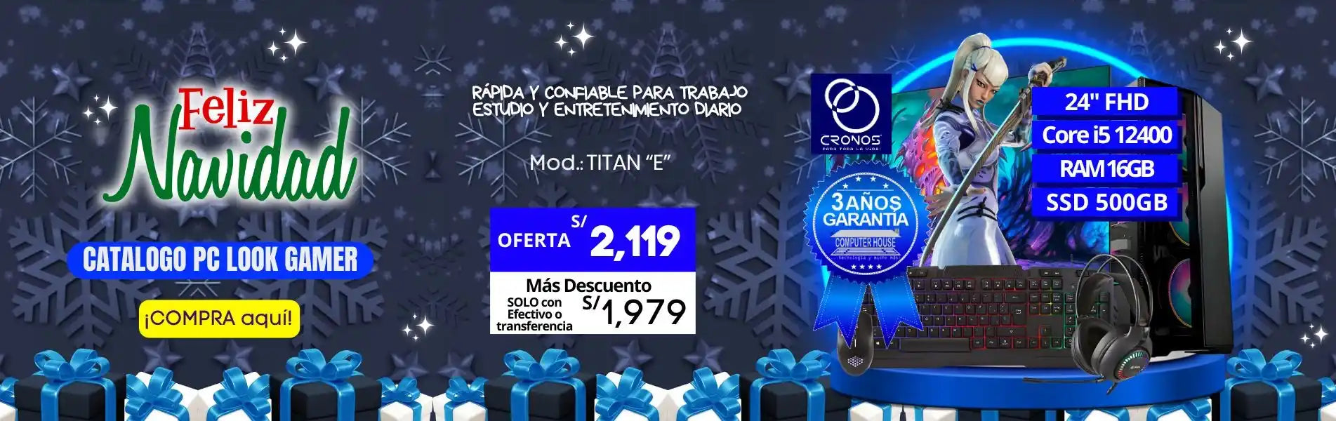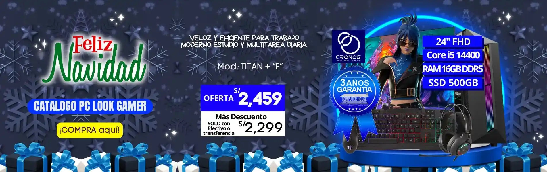 PC Look Gamer CRONOS Titan U5-2 "E", RAM 16GB DDR5, SSD 500GB, Monitor 24″ FHD.