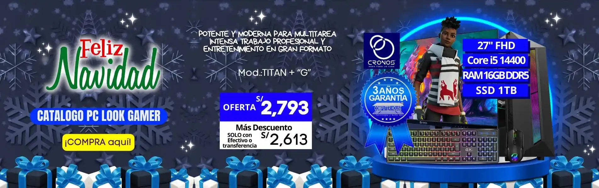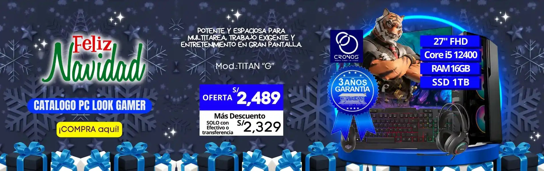 PC Look Gamer CRONOS Titan U5-2 "G", RAM 16GB DDR5, SSD 1TB, Monitor 27″ FHD.