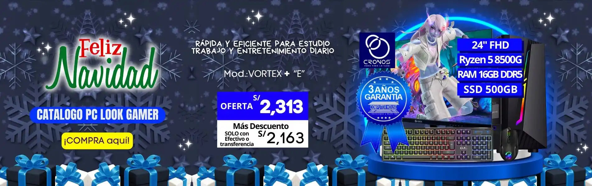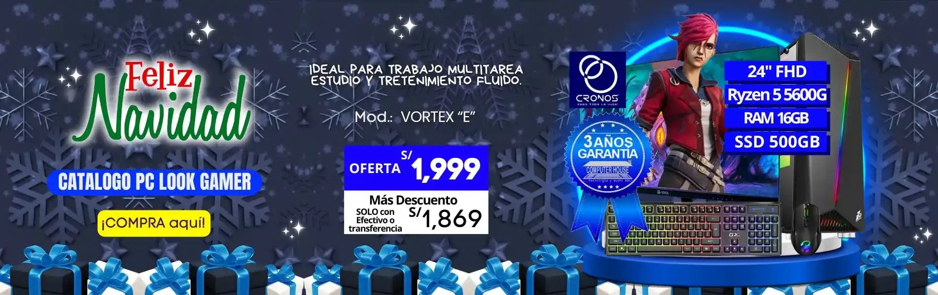 PC Look Gamer CRONOS Vortex R5-5 "E", RAM 16GB, SSD 500GB, Monitor 24″ FHD.