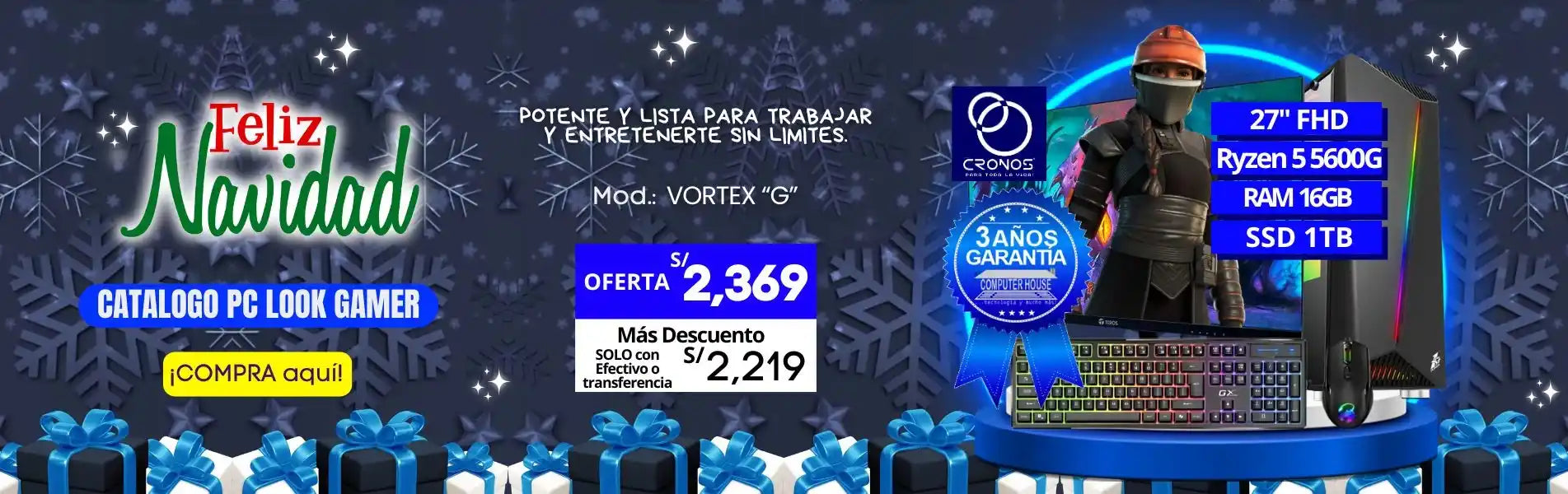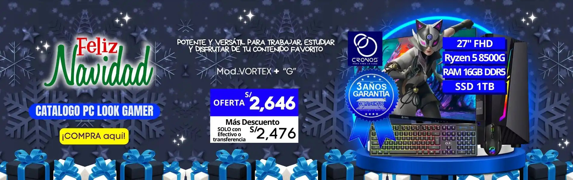PC Look Gamer CRONOS Vortex R5-5 "F", RAM 16GB, SSD 1TB, Monitor 24″ FHD.